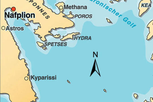 Segelreisen im gemäßigten Revier des Peloponnes ab/an Lavrion. Der Saronische und der Argolische Golf mit Arkadien sind die Ziele